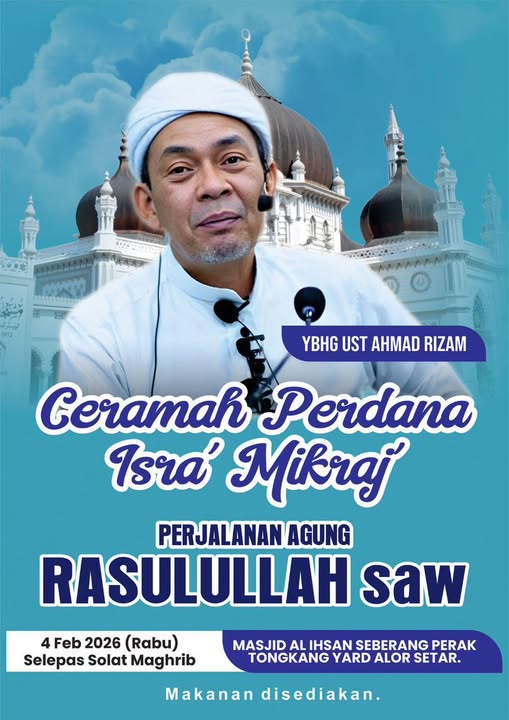 Muslimin dan muslimat dijemput hadir ke Ceramah Perdana Isra’ Mikraj anjuran Masjid Al Ihsan Seberang Perak, Tongkang Yard, Alor Setar.