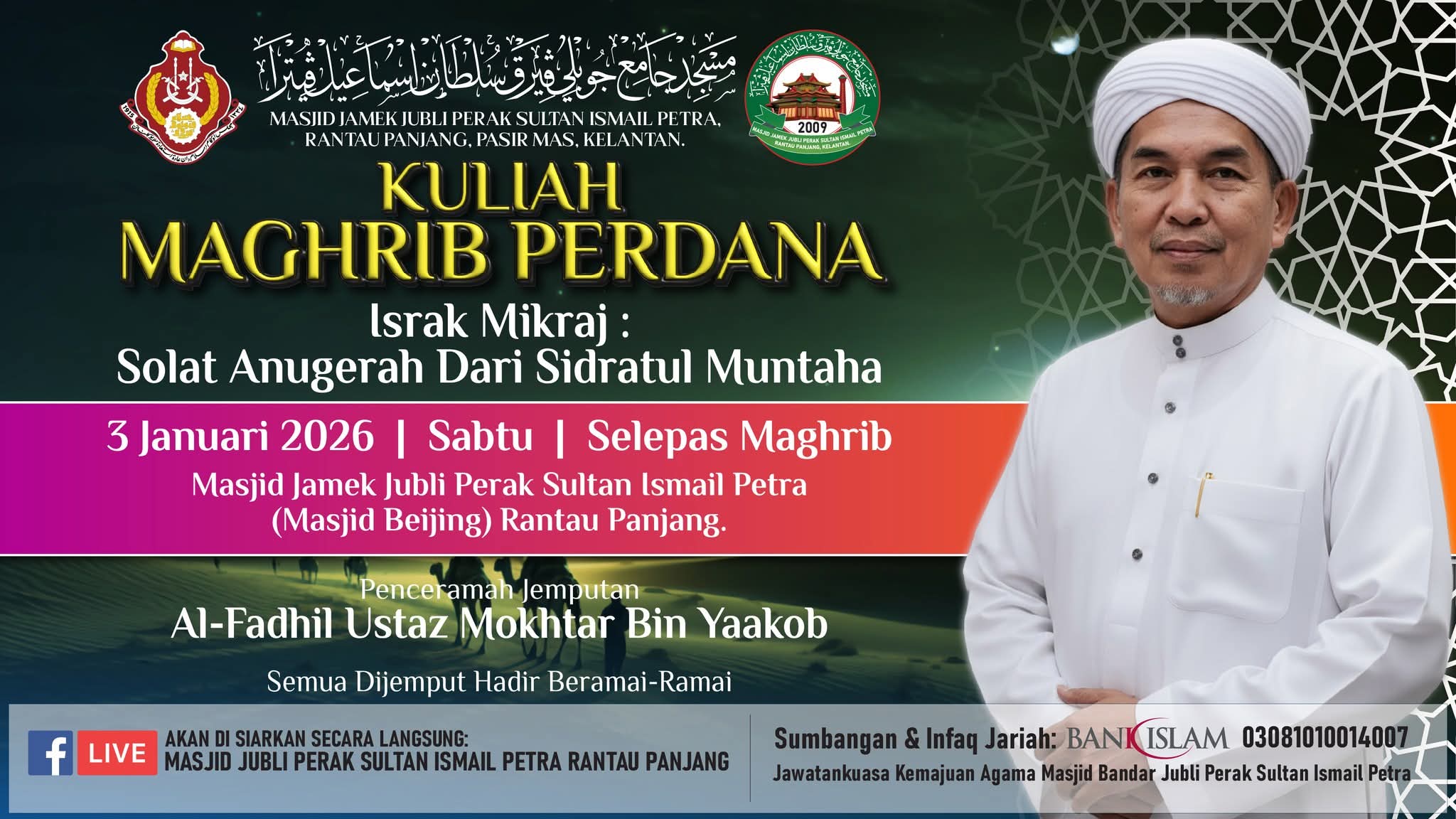Sehubungan itu, seluruh jemaah dan ahli kariah dijemput hadir beramai-ramai bagi mengimarahkan majlis ilmu ini. Kehadiran tuan-tuan dan puan-puan amatlah dialu-alukan dan dihargai.