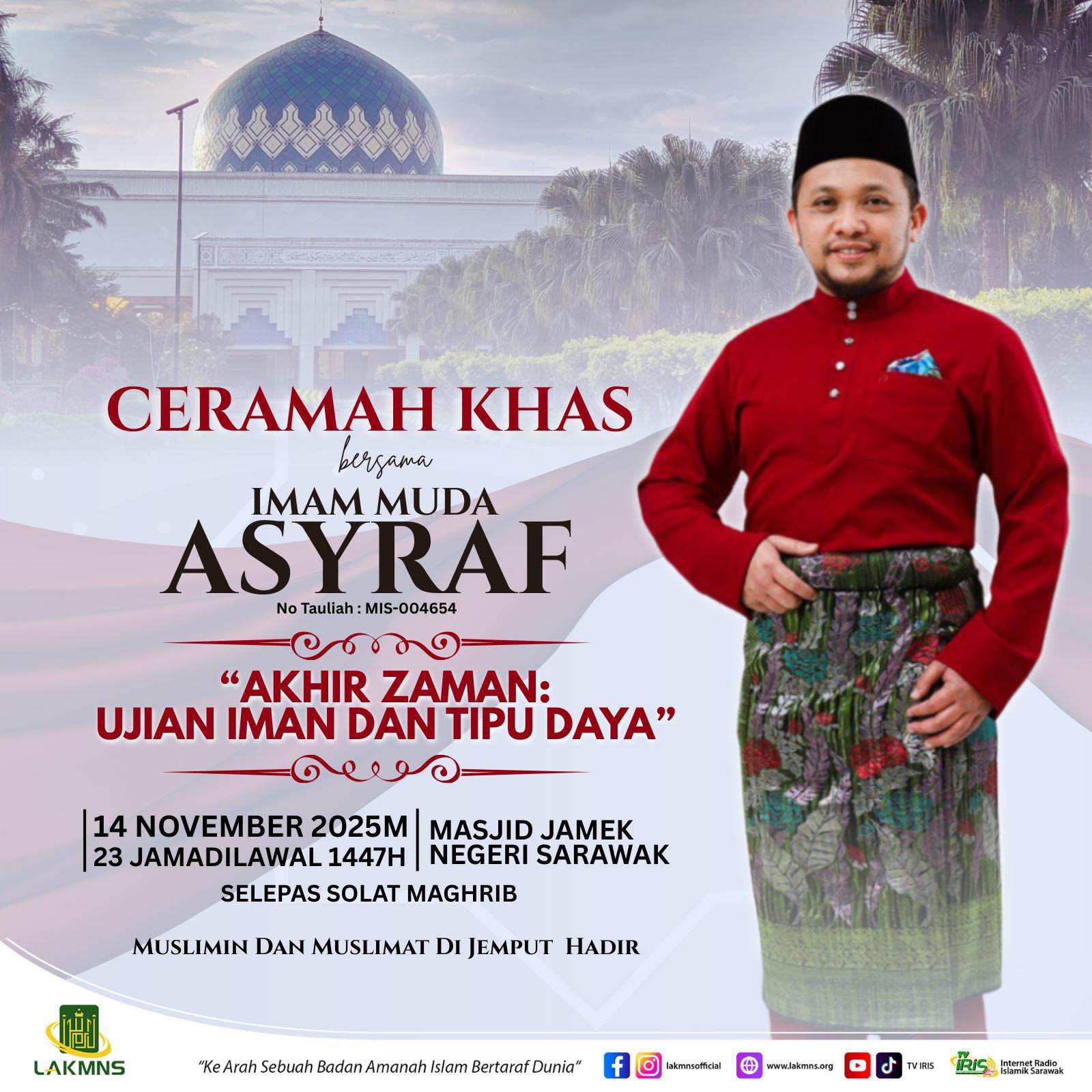 Muslimin muslimat yang dirahmati Allah. InsyaAllah LAKMNS akan mengadakan ๐๐ฒ๐ฟ๐ฎ๐บ๐ฎ๐ต ๐๐ต๐ฎ๐ โ๐๐ธ๐ต๐ถ๐ฟ ๐ญ๐ฎ๐บ๐ฎ๐ป : ๐จ๐ท๐ถ๐ฎ๐ป ๐๐บ๐ฎ๐ป ๐๐ฎ๐ป ๐ง๐ถ๐ฝ๐ ๐๐ฎ๐๐ฎโ bersama Imam Muda Asyraf pada butiran berikut ;